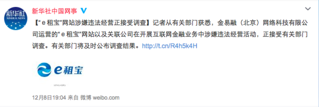 但就在昨天晚上,老大哥新華社發(fā)話了,證明“e租寶網(wǎng)站以及聯(lián)系關(guān)系公司在開展互聯(lián)網(wǎng)金融業(yè)務(wù)中涉嫌違法經(jīng)營(yíng)流動(dòng),正接受有關(guān)部分調(diào)查。”