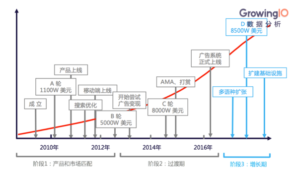 Sean Ellis,在2010年最早提出Growth Hacker的概念,他先后效勞于多家硅谷創(chuàng)業(yè)公司并協(xié)助 Dropbox 完結(jié)了年500%的添加。Sean Ellis 以為一家成功的創(chuàng)業(yè)公司必定先后閱歷三個(gè)期間:Product / Market Fit(商品和商場(chǎng)匹配期)、Transition to Growth(過(guò)渡期)、Growth(添加期)。 SocialCam 失利的地方就在于前期商品還沒(méi)有和商場(chǎng)匹配就開(kāi)端大規(guī)模擴(kuò)大之路,就像房子地基沒(méi)做好就開(kāi)端蓋樓,失利是必定的。 回到咱們今天的主角 Quora ,它前期的添加速度遠(yuǎn)遠(yuǎn)沒(méi)有 SocialCam 那么冷艷,可是一向穩(wěn)定添加。那么八年來(lái),Quora 是如何一步一步走過(guò)來(lái)的呢? 二、Quora 的添加黑客之旅 正如上面的創(chuàng)業(yè)金字塔模型,Quora 的添加進(jìn)程能夠分為明顯的三個(gè)期間。 (一)商品和商場(chǎng)匹配期Quora 在融資方面的表現(xiàn)十分奇特,商品上線前 3個(gè)月就取得了 1100 萬(wàn)美元的 A 輪融資,估值 8600萬(wàn)美元。這不只得益于創(chuàng)始人自身的明星效應(yīng)(他是 Facebook 的首任CTO),更是由于 Quora 對(duì)商場(chǎng)的定位十分精確,他們的中心價(jià)值點(diǎn)即是高質(zhì)量的內(nèi)容。