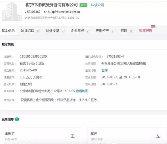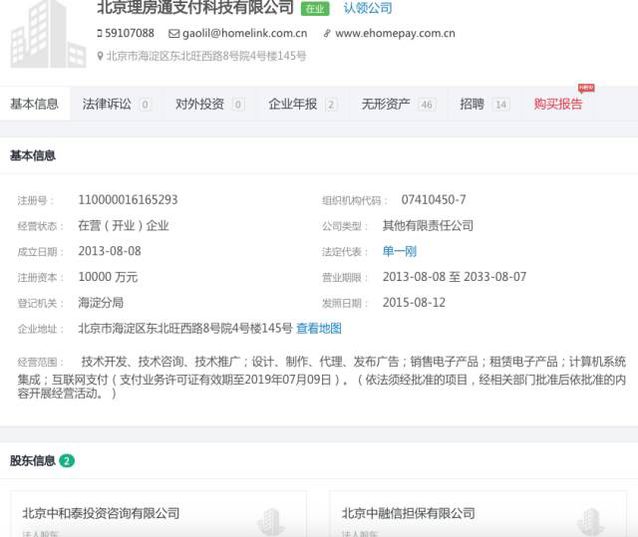 (相關(guān)工商資料信息來自企查查) 理房通注冊(cè)于2013年8月,法人為單一剛,身份是鏈家地產(chǎn)的執(zhí)行董事。理房通的股東為中融信擔(dān)保和北京中和泰投資咨詢有限公司兩家,而北京中和泰投資咨詢有限公司的股東除鏈家地產(chǎn)董事長(zhǎng)左暉外,還有鏈家地產(chǎn)副總裁王擁群。