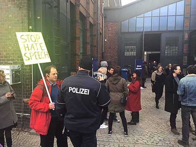 【圖說:施普林格總部大樓內(nèi)的頒獎(jiǎng)現(xiàn)場(chǎng)。德國人其實(shí),場(chǎng)面并不大,但規(guī)格不低。下圖左一為歐洲議會(huì)議長(zhǎng)!