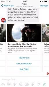 上月,F(xiàn)acebook開放了它們的動靜平臺,讓任何企業(yè)創(chuàng)建的聊天機器人與9億用戶直接交流。 CNN是四月首批推出機器人的內(nèi)容供給商,并且可以供全球觀眾使用。CNN目前擁有2150萬FB粉絲,CNN國際頻道也擁有1160萬,他們的聊天機器人可以知足所有這些粉絲,負(fù)責(zé)照看機器人的團隊隸屬于CNN環(huán)球數(shù)字部分。 CNN聊天機器人的目標(biāo),是通過吸引全球各地新的觀眾、提供應(yīng)他們更加個性化的新聞體驗,來擴大自身的國際影響力。 “動靜類應(yīng)用對新聞來說是個成熟的平臺,由于這里可以一對一的交流,但是也可以作為媒體,大規(guī)模的廣播動靜。這就是其令人高興的原因所在。四大通信應(yīng)用已經(jīng)超越了四大社交平臺。”Wellen如是說。 CNN聊天機器人推出已近一月,他們都有哪些重要的發(fā)現(xiàn)呢? 哪里流血,哪里就能引發(fā)關(guān)注