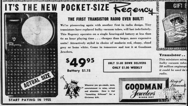 別訴苦它的顏值和大塊頭了,這玩意兒可誕生于1900年!而定價只要1美元!由此,柯達(dá)讓相機離開了三腳架,開始進入日常糊口。對于柯達(dá)而言,相機固然價格很低,但是它可以通過銷售膠卷賺錢。 7. Regency TR-1 Transistor Radio