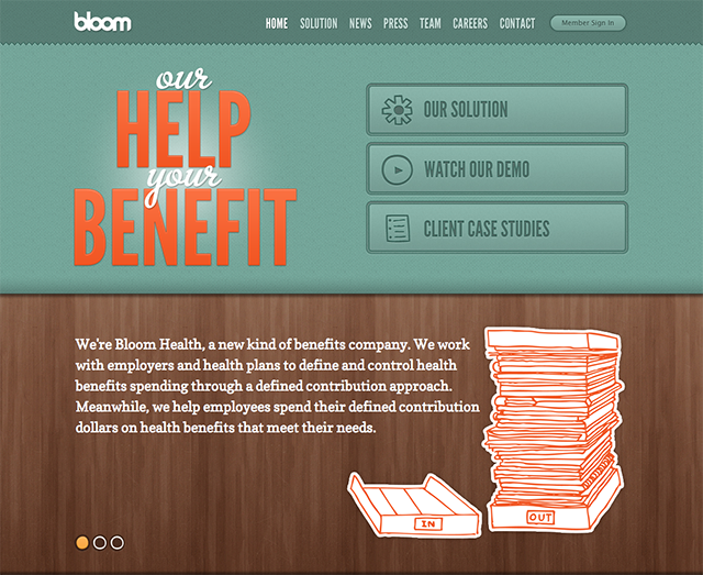 2.Sprout的網(wǎng)站沒有沒使用大片的綠色,只是在灰度較高的背景上加了一些綠色的裝飾來做點(diǎn)綴。但這些元素并不只是美觀而已,同時(shí)也在無形中指引著我們,反差顯著的綠色和黑灰色讓用戶能輕而易舉的分辨出信息重點(diǎn)。