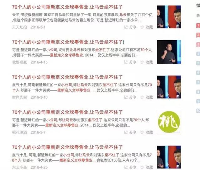 199就能買到 Burberry,200塊就能買到正品耐克……賣個高仿賣出這種驚天地泣鬼神的逼格,你真的合適嗎。 過去那些做高仿的,一般只敢寫:淘寶爆款,月銷千件…… 但畢勝和必要商城,不愧都是B字輩的,用一個C2M的高大上概念,把整個高仿微商都抬高了一個檔次! 看完必要商城的模式先容,我才明白:原來必要商城的貨源都是來自品牌老板小姨家的二大爺開的工廠,對方既不怕傷害品牌利益丟訂單,又不怕你訂單少還個性化需求多單拉出產線要虧本……反正就是:好貨低價專門只賣給你,又正品來又便宜……劉強東你要好好學習一下,京東一直干不外淘寶,原來就是沒有做C2M模式啊! 看脫稿件,覺得整個靈魂都得到了升華的倪叔,深深的覺得自己配不上這么牛逼的客戶,于是我問公關哥哥:您是否找錯人啦?這像這種玄幻小說,不是應該投放出發(fā)點中文網嗎?來找我們這些寫非虛構的真的好嗎? 公關哥哥沒想到我會拒絕,愣了愣就罵出一句:哼!不識提拔,多少大號都投放了我們的文章,你一個小號來挑什么刺? 大號?。!我嚇了一跳,豈非是作為小號的我太low啦,已經跟不上時代的步伐了嘛?我急忙打開了微信搜索,看到如下情況: