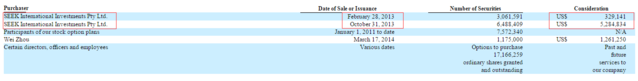 但招股書顯示在麥格理拋售后,大股東Seek并未跟投1.05億美元,只注資了約561萬美元,只是1.05億美元數(shù)據(jù)的零頭。實(shí)際情況是文字游戲:智聯(lián)自身出資1.05億向麥格理回購了股份并注銷,但卻被說成大股東看好而增加持股比例。因?yàn)榭偣煞菹陆,大股東Seek的持股比例天然上升,真正注入的現(xiàn)金僅561萬美元。 以下為招股書截圖: