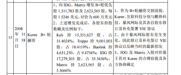 但狂風(fēng)科技招股書顯示,在2008年11月18日,向IDG、Matrix增發(fā)B+輪優(yōu)先股1,311,783股及2,623,565股,每股1.5246美元,對價(jià)為600萬美元,不足報(bào)道中1500萬融資額的一半。