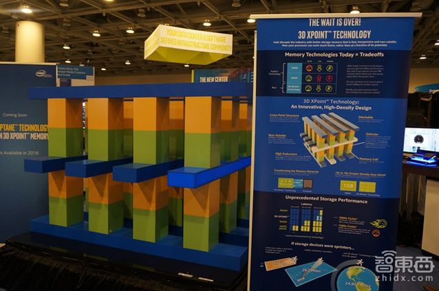 這是在IDF科再奇主題演講時最后收場的蜘蛛機器人群舞!在今年4月的深圳IDF上,其就展示了用基于Curie的手環(huán)控制一群蜘蛛機器人。如今的這群蜘蛛機器人是進級版,甚至帶來了一個“母后”——其后頭部是基于RealSense的實感攝像頭,身體內(nèi)部是迷你電腦。 當然,這套黑科技并沒有什么卵用,主要展示實感的可用性,激發(fā)開發(fā)者創(chuàng)意。科再奇稱,自己不以為蜘蛛機器人會帶下世界末日。 再來看一些技術(shù)控的新玩意: 1. 3D XPoint內(nèi)存技術(shù)