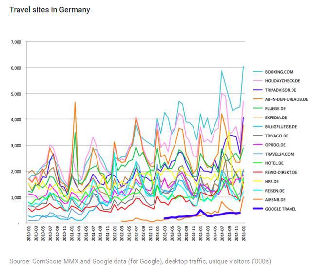 歐盟指責谷歌人工干涉干與了搜索結(jié)果,不外這里要提醒大家的是,DT君經(jīng)由調(diào)查發(fā)現(xiàn),谷歌受到的指控并不是類似百度這樣的販賣廣告位等,而是將自己的一些產(chǎn)品排在了更優(yōu)先的位置。這些被指控的產(chǎn)品,也都不是最核心的產(chǎn)品,好比Google Travel、Google Shopping等。 谷歌在遭到指控后作出回應(yīng),不無委屈地曬出這些產(chǎn)品在一些歐盟國家可憐的市場份額。谷歌表示,旅行搜索是一個競爭激烈的垂直市場,而自己的據(jù)有率實在少得可憐。