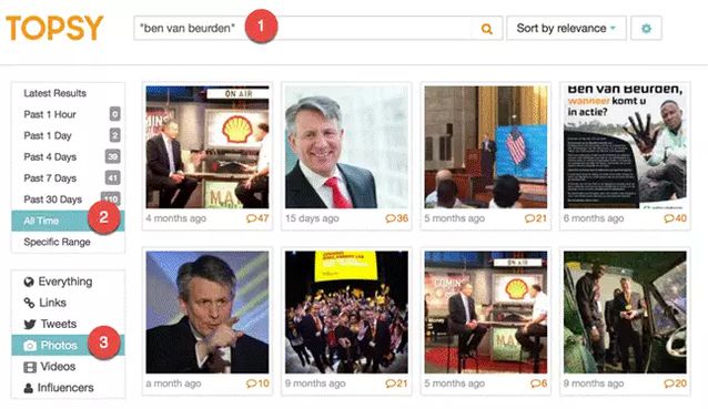 使用這個(gè)指令進(jìn)行檢索,你會(huì)得到關(guān)于包含樞紐“Shell”但是不包括“Ben”的結(jié)果。你會(huì)發(fā)現(xiàn)殼牌CEO Ben van Beurden也常常會(huì)被稱為“Bernardus van Beurden”。 盡可能檢索到關(guān)于目標(biāo)人物或事件更多的代稱,可以讓你把握的信息更加充分和完整。 6.在Toipsy中使用圖片搜索