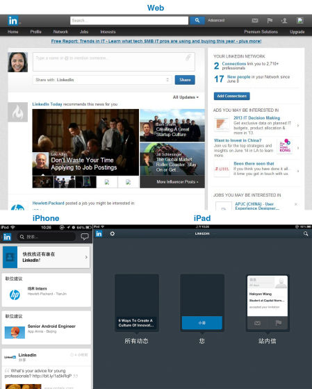 圖為 LinkedIn 的 Web、iPhone 和 iPad 版。 一、如何來(lái)規(guī)劃不同產(chǎn)品上的功能 在PC端有超大的屏幕,有鼠標(biāo)和鍵盤(pán)靈活的交互形式,其功能往往比較復(fù)雜,用戶能通過(guò)鼠標(biāo)指點(diǎn)的形式快速地完成各種任務(wù)。然而在PAD與手機(jī)端,屏幕能呈現(xiàn)的信息有限,交互形式也是精度相對(duì)較差的手勢(shì)形式,所有的這些都決定了在移動(dòng)真?zhèn)功能應(yīng)該做減法。 對(duì)于新產(chǎn)品來(lái)說(shuō),移動(dòng)優(yōu)先或者是移動(dòng)平等重要的產(chǎn)品規(guī)劃方式是及其重要的,獨(dú)立思索在移動(dòng)端能呈現(xiàn)的功能和內(nèi)容,讓設(shè)計(jì)師更清楚地看到產(chǎn)品的核心功能、內(nèi)容,有利于設(shè)計(jì)師掌握產(chǎn)品的方向。甚至可以考慮將移動(dòng)端優(yōu)先于PC端,PC的功能在移動(dòng)的功能基礎(chǔ)上去架構(gòu),它也不會(huì)脫離產(chǎn)品的核心價(jià)值。 PC 固有的特點(diǎn)在進(jìn)行復(fù)雜功能操縱時(shí)會(huì)更有上風(fēng)。那是不是復(fù)雜功能就直接轉(zhuǎn)移到 PC 上,而在手機(jī)上只展現(xiàn)簡(jiǎn)樸功能呢?我覺(jué)得未必,要看產(chǎn)品的目標(biāo)用戶和產(chǎn)品特點(diǎn),有些產(chǎn)品用戶只更傾向于移動(dòng)端使用,甚至還有些使用本產(chǎn)品的用戶都沒(méi)有 PC。因此,在考慮用戶特性的基礎(chǔ)上,優(yōu)先規(guī)劃移動(dòng)真?zhèn)產(chǎn)品信息架構(gòu)。假如有些功能覺(jué)得轉(zhuǎn)移到 PC 上衡量過(guò)沒(méi)有題目,那我覺(jué)得可以進(jìn)行轉(zhuǎn)移,在移動(dòng)端凸起最核心的功能給用戶,并保持界面簡(jiǎn)潔。 對(duì)于老產(chǎn)品,像淘寶網(wǎng)這樣的產(chǎn)品,其 PC 端本身及其復(fù)雜。那在產(chǎn)品設(shè)計(jì)時(shí),更多地思索在移動(dòng)端用戶的使用情景和核心功能,先去知足最核心的功能,知足有手機(jī)特色和移動(dòng)情景的功能。 二、設(shè)計(jì)上的差異在哪兒 當(dāng)前的設(shè)計(jì)手法在各個(gè)平臺(tái)、各種形態(tài)上都有融合的趨勢(shì),在Web真?zhèn)設(shè)計(jì)也越來(lái)越客戶端化,很多Web App都讓人很難判定到底是HTML5做的仍是Native的。因此,在設(shè)計(jì)手法上的差異會(huì)越來(lái)越小。 然而,基于 PC、PAD、Phone的設(shè)備特性有較大的差異,PC 的指點(diǎn)操縱與PAD、Phone 的觸摸操縱有很大的不同,觸摸優(yōu)先的設(shè)計(jì)原則對(duì)移動(dòng)真?zhèn)設(shè)計(jì)有較大的匡助。其次,用戶的設(shè)備的機(jī)能和網(wǎng)絡(luò)特征千差萬(wàn)別,在設(shè)計(jì)時(shí)需要去思索各自用戶使用的環(huán)境。再次,多設(shè)備用戶,在使用產(chǎn)品時(shí),如何進(jìn)行設(shè)備間的切換,如何銜接不同設(shè)備的操縱而不被丟棄都是設(shè)計(jì)師需要考慮的題目。 對(duì)于WAP與Native的設(shè)計(jì),主要關(guān)注瀏覽器的支持特性及Native上能施展的手機(jī)、各類傳感器的特性,這需要設(shè)計(jì)師拓寬思路去思索,好的設(shè)計(jì)能極大地晉升體驗(yàn)。 三、設(shè)計(jì)上的策略有哪些 從PC端到移動(dòng)真?zhèn)Web設(shè)計(jì)時(shí),響應(yīng)式設(shè)計(jì)是提得最多的方法。且在很多公司都有良多實(shí)踐。在淘寶,梓佑(編者注:淘寶資深 UED 總監(jiān))之前也一直在推動(dòng)響應(yīng)式的設(shè)計(jì),在一淘網(wǎng)、淘寶搜索等很多產(chǎn)品上都有實(shí)踐,總得來(lái)說(shuō)對(duì)用戶體驗(yàn)起到了積極的作用。 然而我們看到的響應(yīng)式做得好的網(wǎng)站往往是結(jié)構(gòu)相對(duì)簡(jiǎn)樸的博客類、新聞?lì)惥W(wǎng)站,這些頁(yè)面結(jié)構(gòu)簡(jiǎn)樸,響應(yīng)規(guī)則輕易定制,前端實(shí)現(xiàn)也不復(fù)雜。而對(duì)于復(fù)雜的網(wǎng)頁(yè)的響應(yīng)式設(shè)計(jì),則都會(huì)碰到不少挑戰(zhàn),淘寶資深設(shè)計(jì)師,樂(lè)乘,在做玩客項(xiàng)目時(shí),總結(jié)了一套設(shè)計(jì)方案,值得參考。但是總的來(lái)說(shuō),復(fù)雜頁(yè)面是不是要使用響應(yīng)式還值得探討。 對(duì)于PC與移動(dòng)客戶端(App)的設(shè)計(jì)有何差異?成功移動(dòng)客戶端產(chǎn)品往往是基于用戶任務(wù)與使用情景進(jìn)行設(shè)計(jì),施展了手機(jī)的特性,使原本PC的功能得到更好地彌補(bǔ)與晉升。如大眾點(diǎn)評(píng)中的LBS使用戶能快速地發(fā)現(xiàn)四周的店鋪;微博能快速地上傳即時(shí)拍攝的照片,能隨時(shí)隨地的查詢等。 那WAP與客戶真?zhèn)上有什么側(cè)重呢?從使用情景上來(lái)講,這兩者是一致的。主要的側(cè)重有兩點(diǎn),其一是兩者的流量原來(lái)往往不一致,根據(jù)流量來(lái)源來(lái)區(qū)分用戶的特征,基于用戶特征的不同來(lái)使兩者在產(chǎn)品上的不同。其二是WAP上一些限制和上風(fēng),WAP上有很多功能還無(wú)法實(shí)現(xiàn),另外WAP有快速迭代的上風(fēng),也可以進(jìn)行一些項(xiàng)目的試錯(cuò)等。當(dāng)然,當(dāng)前WAP與客戶端也在融合,這也是一個(gè)方向,跟著HTML5等技術(shù)的成熟,兩者的融合是早晚的事情。 最后,移動(dòng)互聯(lián)網(wǎng)的時(shí)代已經(jīng)來(lái)臨,移動(dòng)用戶的體量也會(huì)越來(lái)越超越PC,在進(jìn)行產(chǎn)品設(shè)計(jì)