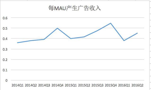 這張圖反映的是每MAU的廣告營(yíng)收,今年一季度,微博達(dá)到0.38美元,二季度達(dá)到0.45美元。摩根斯坦利對(duì)亞洲同類(lèi)公司這個(gè)指標(biāo)給出的數(shù)據(jù)是:0.76美元(一季度)。Facebook在亞洲,這個(gè)數(shù)字是1.5美元(一季度)。 眾所周知的是,新浪擁有可能是中國(guó)最好的互聯(lián)網(wǎng)廣告銷(xiāo)售步隊(duì)。在諸家門(mén)戶中,它單個(gè)流量所能帶來(lái)的廣告銷(xiāo)售,即便面臨中國(guó)流量排名第二的騰訊QQ.com,也涓滴不落下風(fēng)。 但微博的廣告銷(xiāo)售效率并不高。 2016年一季度,微博的CPM價(jià)格為15元人民幣,而微信朋友圈廣告的CPM價(jià)格達(dá)到60元人民幣,本日頭條為40-50元人民幣。 微博背后是100萬(wàn)廣告主,長(zhǎng)尾效應(yīng)的確和朋友圈廣告、頭條廣告不同。微博CPM價(jià)格較低,對(duì)廣告主誠(chéng)然是好動(dòng)靜,但對(duì)微博,可謂效率還有待進(jìn)步。 這些數(shù)字當(dāng)然可以說(shuō)明微博并沒(méi)有走到已無(wú)上升空間的境地,但同時(shí),也可以說(shuō)明,未來(lái)微博的主要重點(diǎn)是:打磨產(chǎn)品以進(jìn)步DAU與MAU之比,晉升效率以進(jìn)步CPM價(jià)格。 這是微博三季度、四季度財(cái)報(bào)發(fā)布后,應(yīng)該關(guān)注的重點(diǎn)指標(biāo)。 |