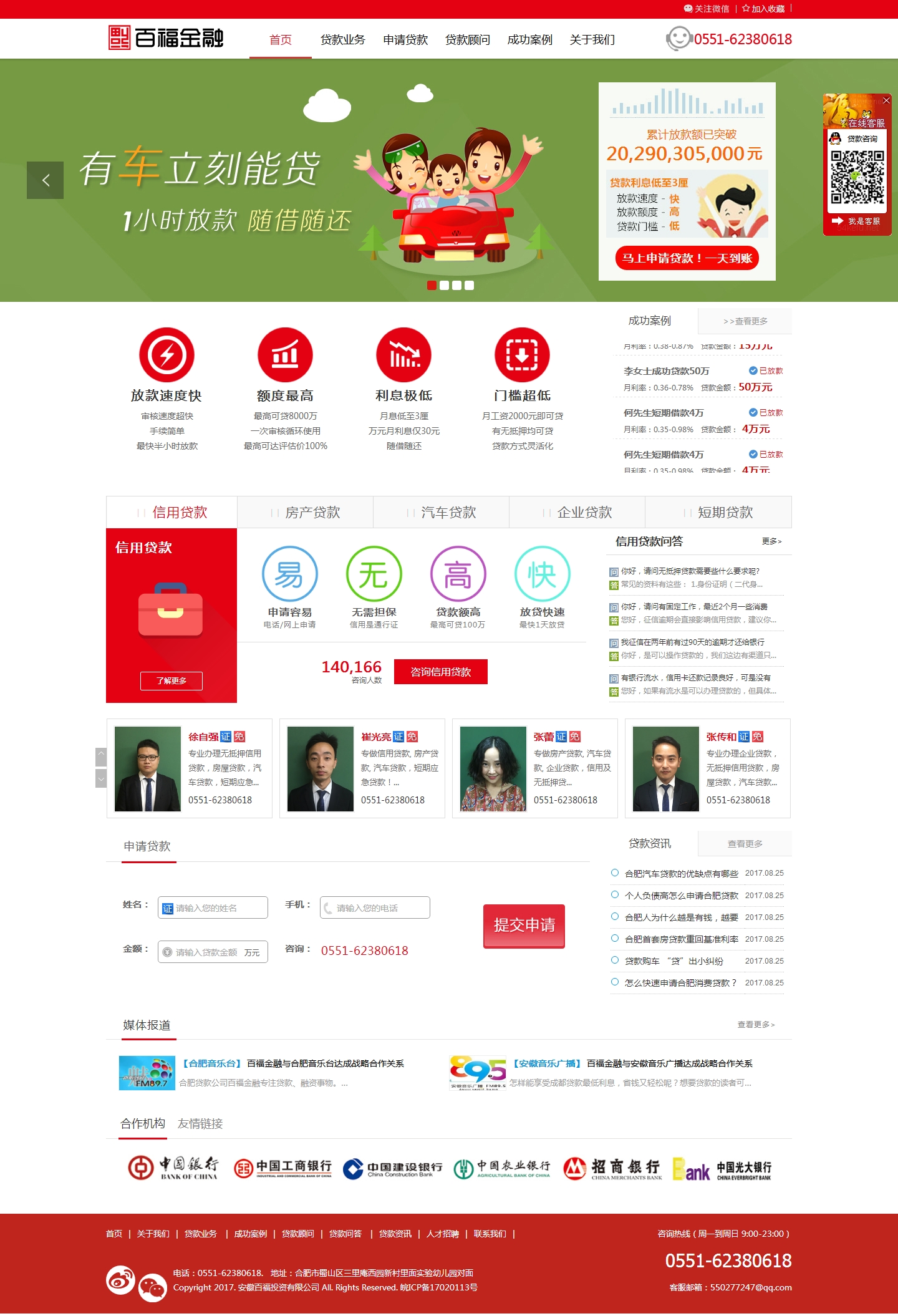 百福金融,系安徽百福投資有限公司旗下平臺。 ★ 銀行月利息低至3厘 ★ 合肥市前三強貸款平臺 ★ 金融協(xié)會會員單位 ★ 銀行優(yōu)質(zhì)合作單位 ★ 40人專業(yè)貸款團隊