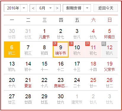 端午節(jié)即將來臨,根據(jù)國務(wù)院2016年端午節(jié)放假通知精神,結(jié)合我司實(shí)際情況,作出以下放假鋪排:2016年6月9日(木曜日)至2016年6月11日(禮