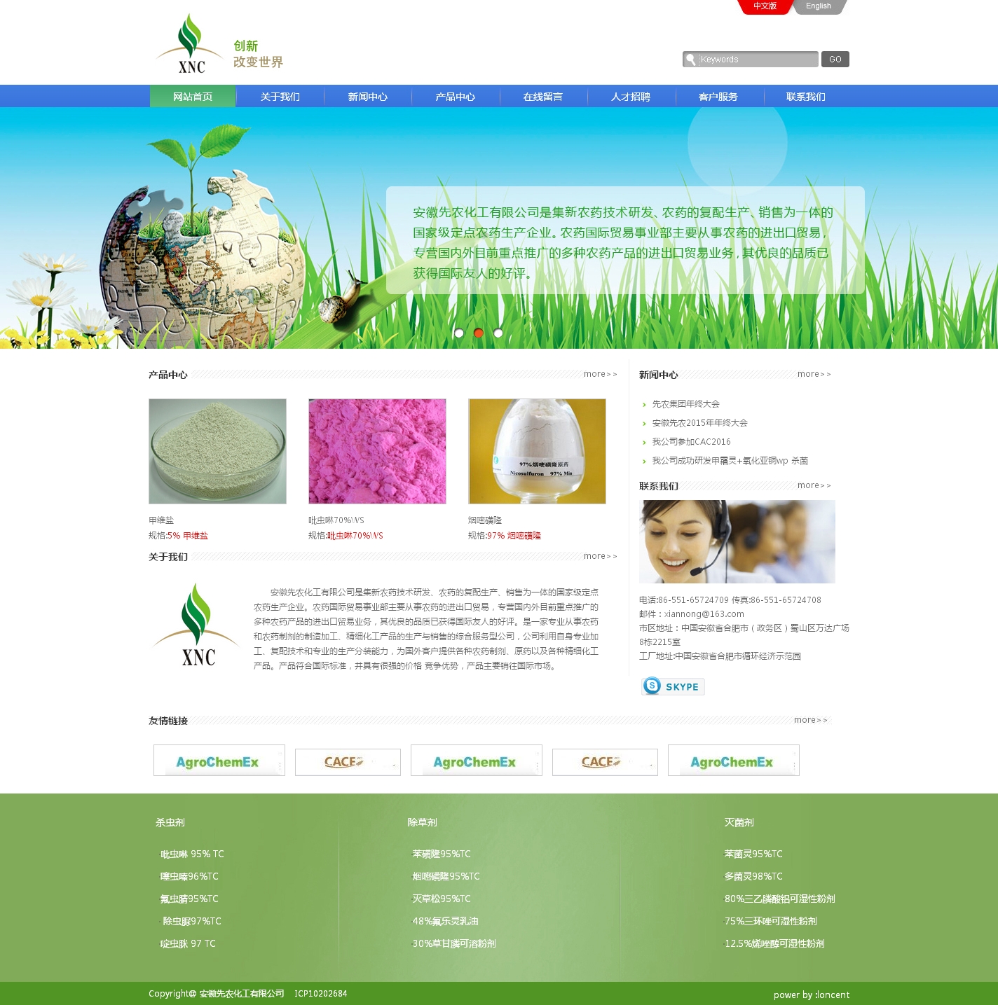 客戶案例:http: www xn-chem com 安徽先農(nóng)化工有限公司是集新農(nóng)藥技術(shù)研發(fā)、農(nóng)藥的復(fù)配生產(chǎn)、銷售為一體的國(guó)家級(jí)定點(diǎn)農(nóng)藥生產(chǎn)企業(yè)。農(nóng)藥