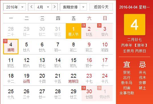 2016清明節(jié)假期將至,根據(jù)根據(jù)國(guó)家節(jié)假日放假劃定,并考慮公司的實(shí)際情況,公司特將2016年清明節(jié)放假做以下鋪排,請(qǐng)各位員工參照?qǐng)?zhí)行! 1