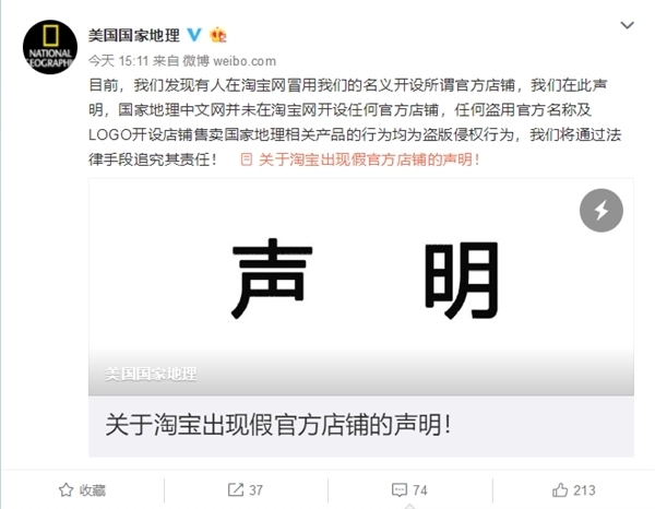 12月6日,美國國家地理官方微博發(fā)布聲明稱,淘寶有店肆盜用自己的Logo,出售盜版日歷,將會(huì)通過法律手段保護(hù)公司的權(quán)益和利益。
