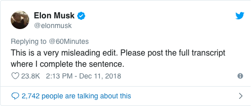 北京時(shí)間12月11日下午音訊,特斯拉的首席執(zhí)行官埃隆·馬斯克(Elon Musk)在承受哥倫比亞廣播公司(CBS)《60分鐘》節(jié)目采訪時(shí),表明自己無意于再次擔(dān)任這家汽車制造商的主席一職。