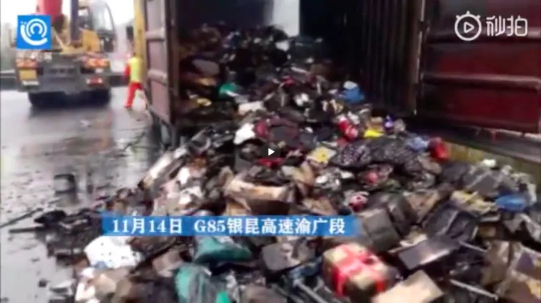 雙11慘劇又發(fā)生了 一輛從重慶開往廣安的快遞車自燃起火 還好,我的快遞都到了