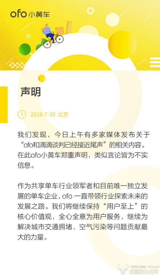近來(lái),有媒體報(bào)導(dǎo)稱,ofo和滴滴的商洽或現(xiàn)已挨近尾聲,收買價(jià)格再三下降。對(duì)此,ofo稱音訊不實(shí),滴滴則表示內(nèi)部沒(méi)有任何音訊。