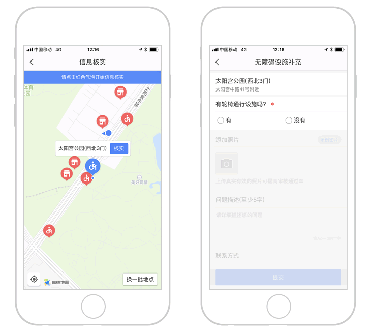 12月15日,高德地圖宣告無障礙地圖的開發(fā)更進一步,現(xiàn)在已上線無障礙設備上報功用。