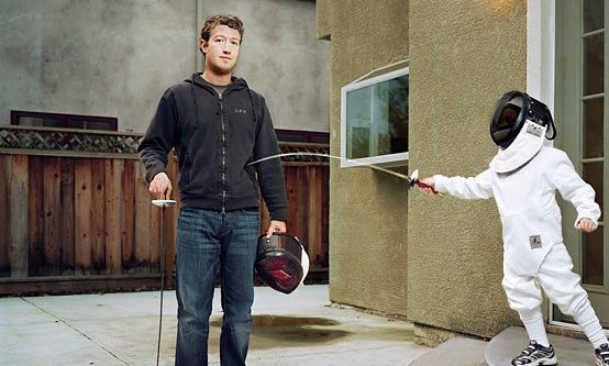 圖注:Facebook創(chuàng)始人扎克伯格酷愛擊劍運(yùn)動,喜歡把貿(mào)易競爭看做是競技場上的搏殺在谷歌大樓的一間會議室里,放著一幅巨大手繪壁畫。該畫描