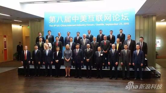 中國國家主席習近平和參加中美互聯(lián)網(wǎng)論壇的中美聞名企業(yè)的總裁合影 (西雅圖中文電臺臺長蘇小元 拍攝) 中國國家互聯(lián)網(wǎng)信息辦公室主