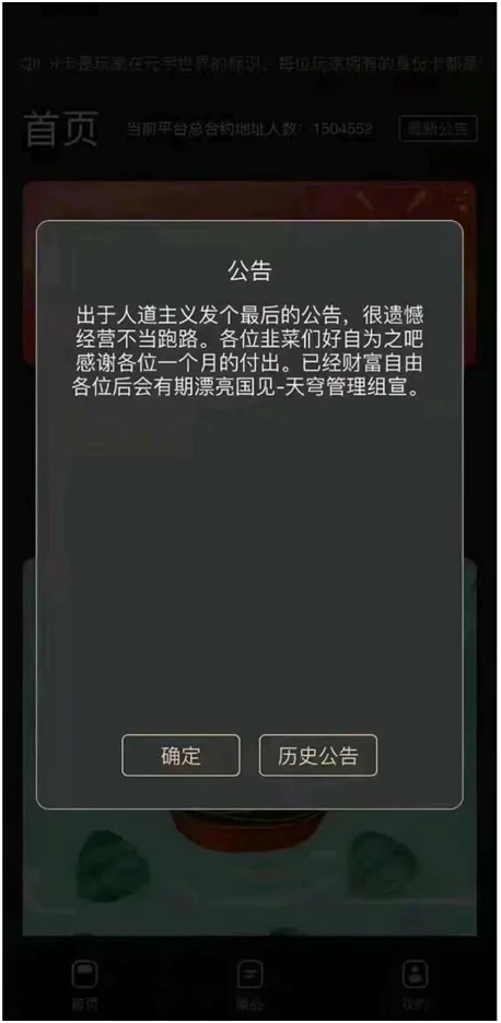繼加密錢銀LUNA崩盤風波后,代幣市場也起波瀾! 6月6日,一張關于蒼穹元世界數(shù)字藏品渠道跑路的公告在網(wǎng)上撒播。