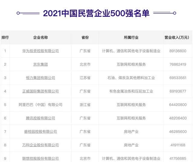 在新的我國(guó)民營(yíng)企業(yè)500強(qiáng)排行榜傍邊,京東憑借著7686.2419億元營(yíng)收逾越阿里巴巴6442.08億元營(yíng)收成為了我國(guó)排名第二大民營(yíng)企業(yè),僅次于8913.68億元營(yíng)收的華為,